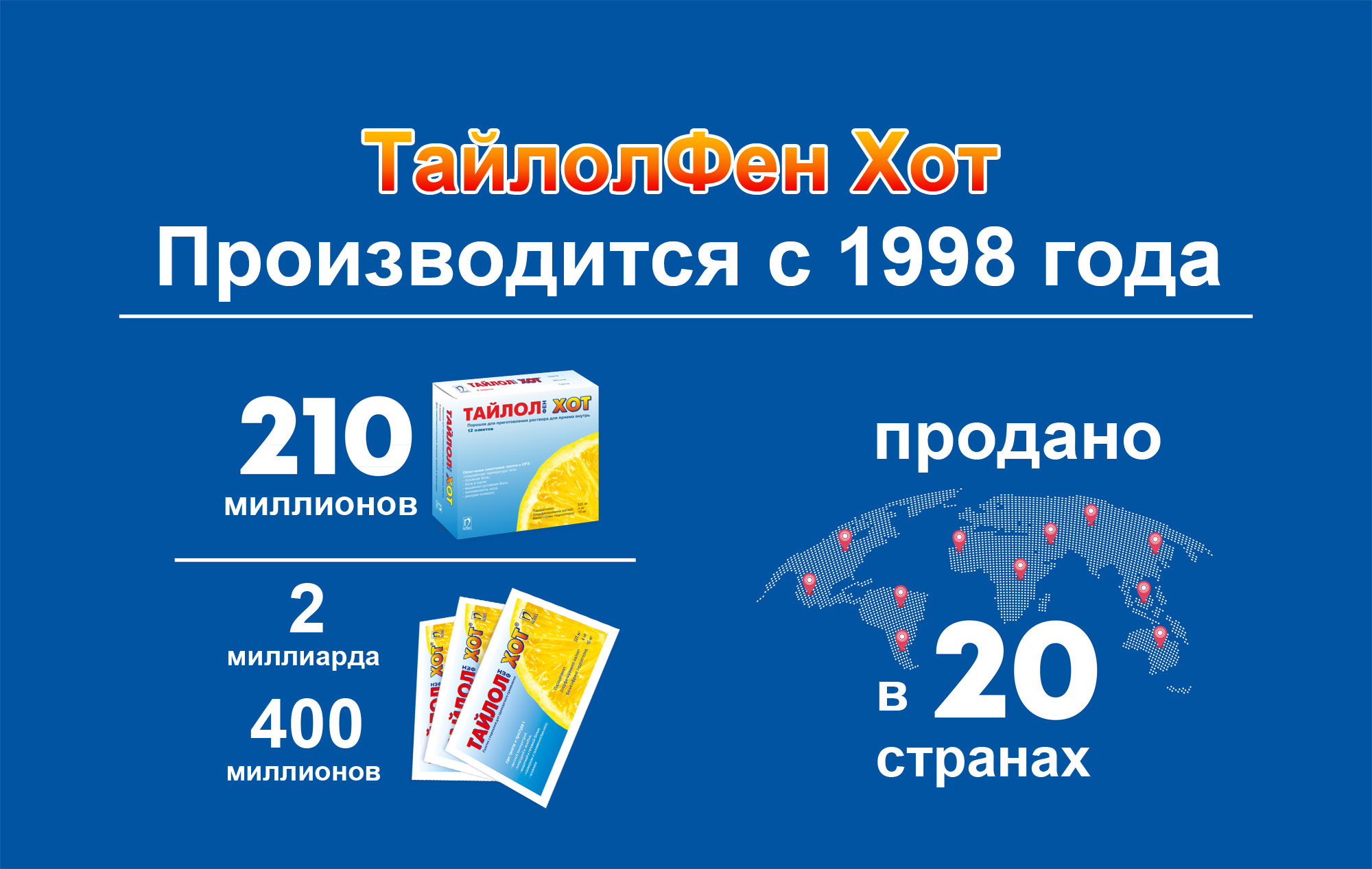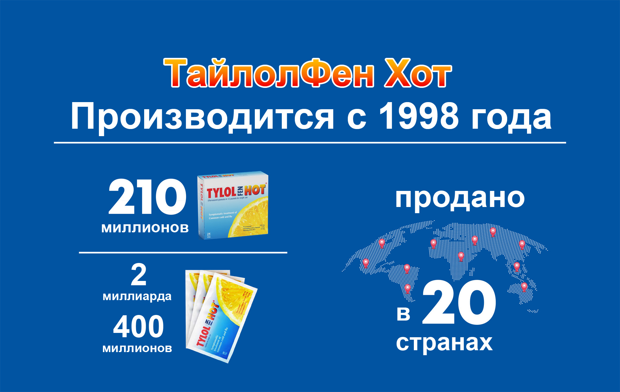 С 1998 года TylolFen Hot помогает миллионам людей по всему миру найти быстрое и надежное средство для облегчения симптомов инфекций верхних дыхательных путей.