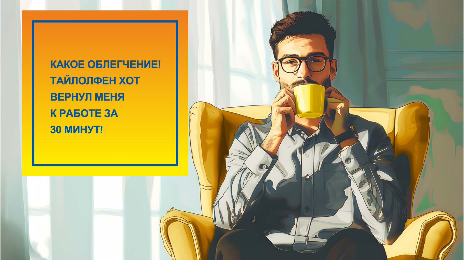 К счастью, хороший друг, употреблявший TylolFEN Hot с детства, порекомендовал его ему. Приготовив напиток по простой формуле: взболтать, растворить, размешать и выпить, Марк почувствовал себя лучше всего всего через 30 минут.