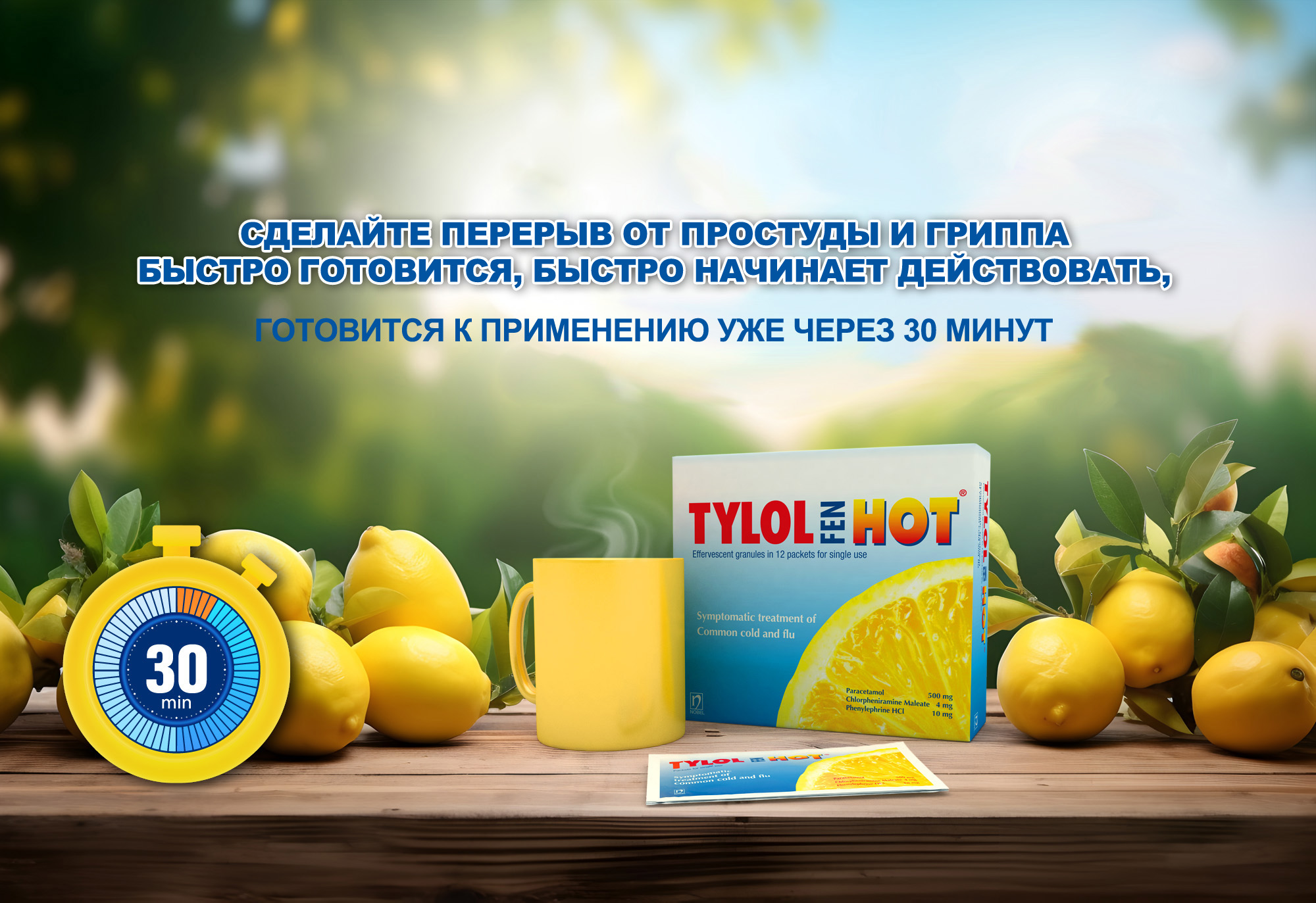 «Облегчите симптомы простуды и гриппа с помощью TylolFen Hot»